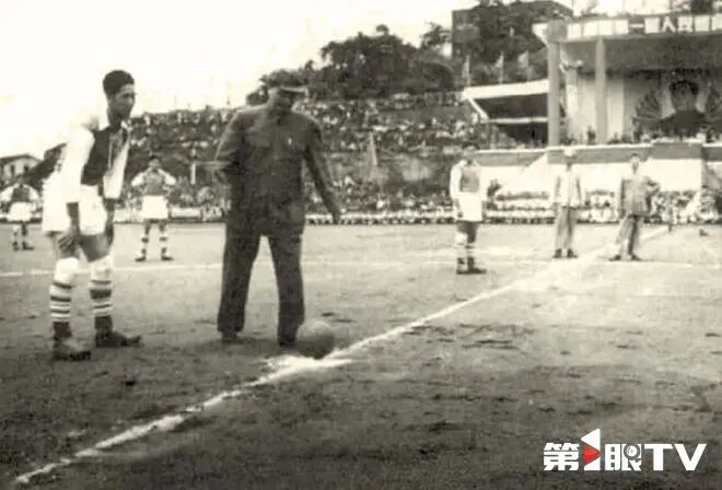 1952年5月,西南区第一届人民体育运动大会在大田湾人民广场举办,贺龙为足球比赛开球。