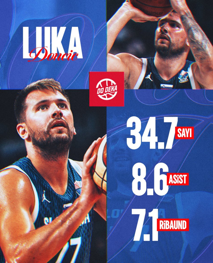 卢卡-东契奇结束了本届欧洲杯的征程,场均33.3分钟,拿到34.7分8.6篮板7.1助攻2.7抢断0.6盖帽,命中率45.8%,三分命中率32.1%,目前得分、助攻、篮板、抢断、盖帽、效率都是斯洛文尼亚第一,其中得分、效率是欧洲杯第一。